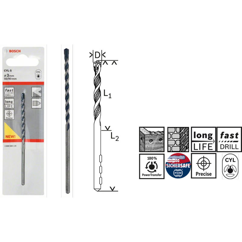 ● CYL-5 Delme Ucu, beton ve taş delmede ekstra uzun dayanıklılık sunar.